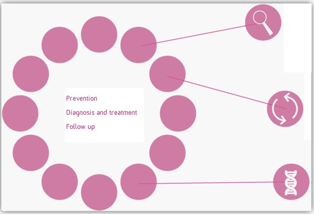 The IEO Gynecology and Senology Multidisciplinary Programs (surgeons, oncologists, pathologists, imaging specialists, radiotherapists, geneticists, nutritionists, psychologists, sexologists and fertility specialists) will work together to try to answer all the problems that a woman facing an oncological disease has to deal with and to support her all the way through her clinical path here at IEO.