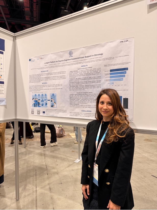 In November, a study included in the ALTHEA project took part in the ESMO AI & Digital Oncology congress. On this occasion, a poster titled “A Digital Platform for Psycho-Cognitive Assessment and Support in Oncology” was presented by Dr. Ilaria Durosini (Researcher at the IEO and University of Milan), describing the results of a study held with Italian cancer patients, caregivers, and healthcare providers to collect their opinions on the challenges of accessing psychological support and their preferences regarding a digital mental health platform.