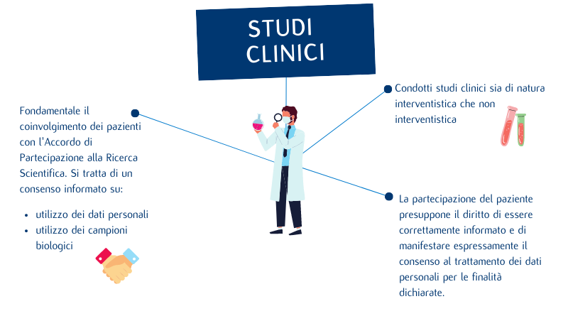 La partecipazione del paziente presuppone il diritto di essere correttamente informato e di manifestare espressamente il consenso al trattamento dei dati personali per le finalità dichiarate. Il paziente può esercitare in qualsiasi momento i suoi diritti in tema di accesso, rettifica, cancellazione, limitazione, opposizione o portabilità dei propri dati personali, rivolgendosi direttamente al Responsabile Protezione Dati Personali dell’Istituto.