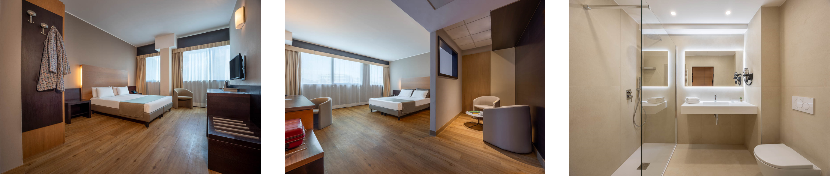 • Camere estremamente spaziose, disponibili sia in formula hotel che in formula residence, con monolocali e bilocali dotati di angolo cottura, ideali anche per soggiorni medio-lunghi;