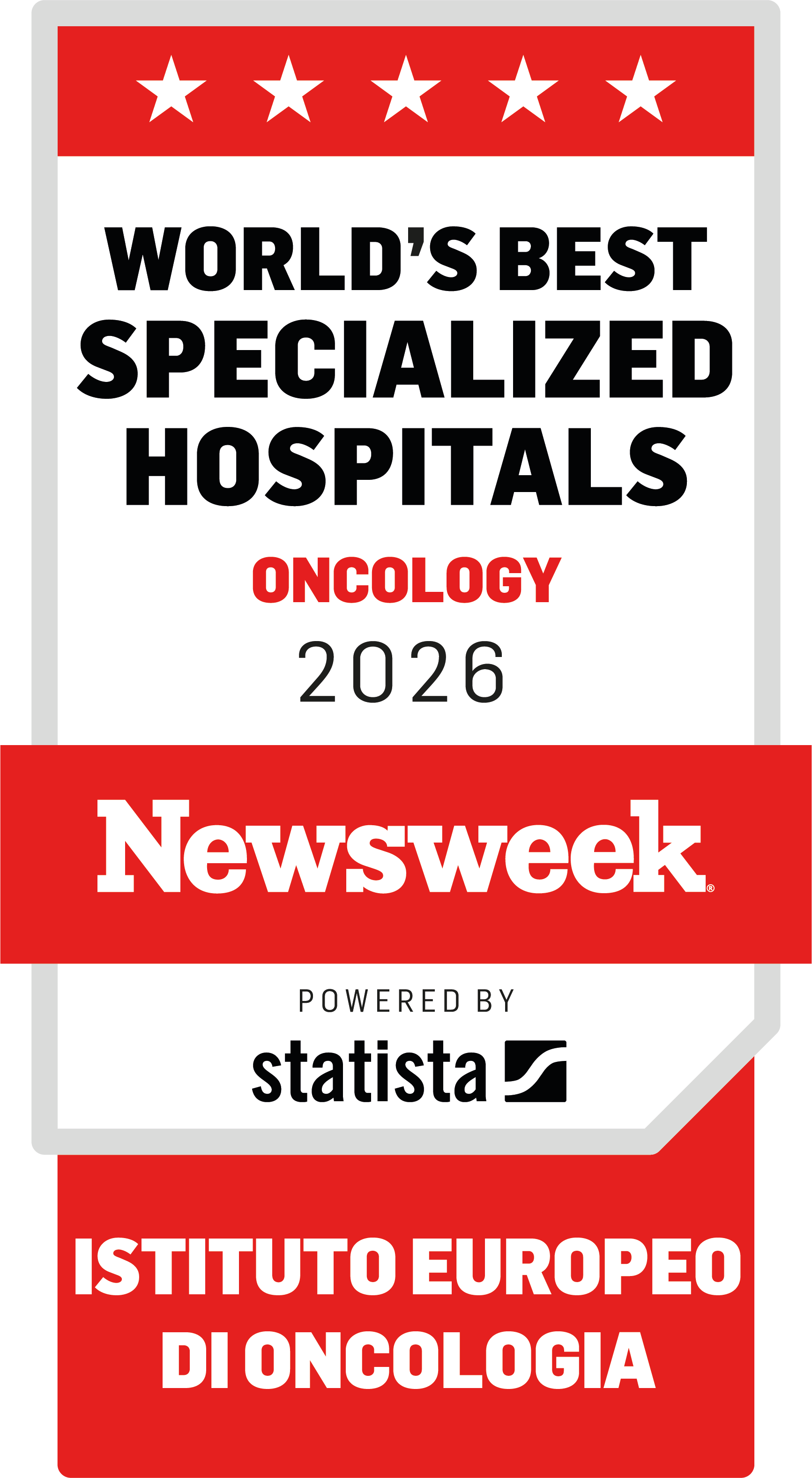 Nella classifica Newsweek World’s Best Specialized Hospital viene attribuita particolare evidenza pubblica al tema dei PROMS, i cui indicatori considerati alla luce della classifica generale dei 300 migliori ospedali internazionali, vede IEO al 1° posto in Europa con il massimo livello (tre nastri), a dimostrazione di un sistema avanzato di misurazione con risultati utilizzati per migliorare la qualità delle cure e la trasparenza dei risultati.