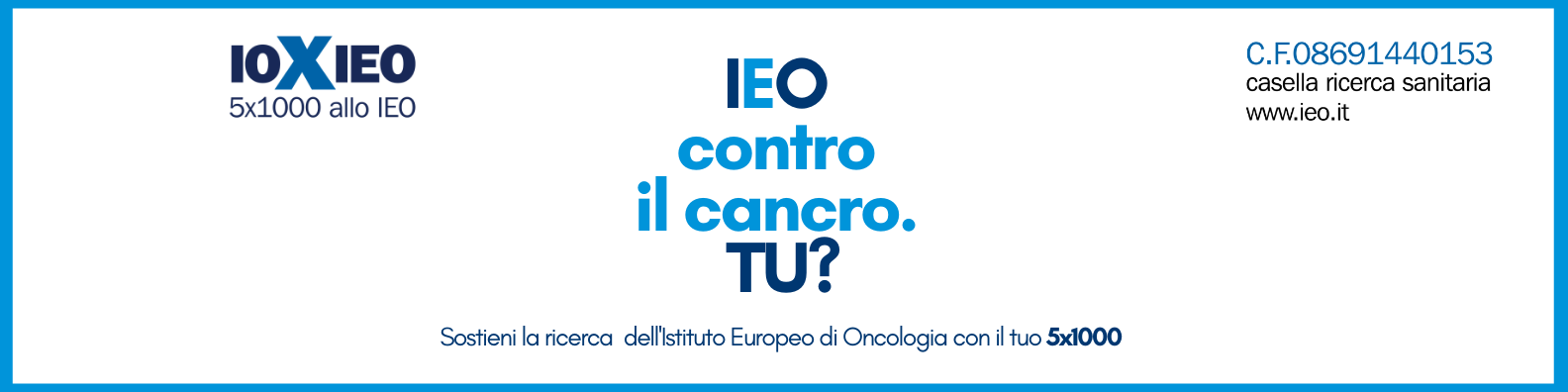 La tua firma ha un impatto concreto nella lotta contro il cancro. Destinare il 5x1000 allo IEO non ti costa nulla e darai nuova forza alla ricerca e alla cura dei tumori.